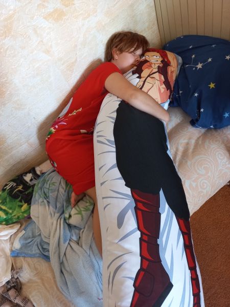 Очень доволен покупкой. Размер в самую точку, - сперва хотел взять побольше, 180 см, но решил остановиться на 150 и не прогадал, - ожидал даже, что будет чуть поменьше :Р Наволочка хорошая, принт выполнен качественно, руками трогать подушку приятно, но для лица, на мой вкус, материал всё же жестковат, на первых порах было неудобно :( Сейчас уже привык. Сама подушка мягкая и хорошо обнимается. Но через пару недель начала проминаться у ног. Ничего страшного, процесс естественный, но в силу отсутствия опыта, ожидал, что дакимакуры чуть менее податливые. Приятный бонус в виде открытки и вкладыша с инструкцией по уходу за дакимакурой тоже порадовали, хоть покупал и не в подарок :) В целом, как и сказал, очень доволен. Спать стало удобнее, засыпать чуть проще. Плюс, даже днём начал чуть лучше следить за собой и своим непосредственным окружением. Всё-таки вайфу смотрит хД Хотел поставить 4.5, преимущественно из-за наволочки, но если уж округлять, то в лучшую сторону :) P.S. Для таких же тревожных, как я, добавлю, что приходит заказ в непрозрачной почтовой упаковке, так что вам не придётся бояться, что кто-то увидит, как вы тащите свою дакимакуру до дома :Р