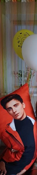 Плотная наволочка, четкое изображения, здоровая очень подушка, молния на торце подцшки для регулировки количества наполнителя.