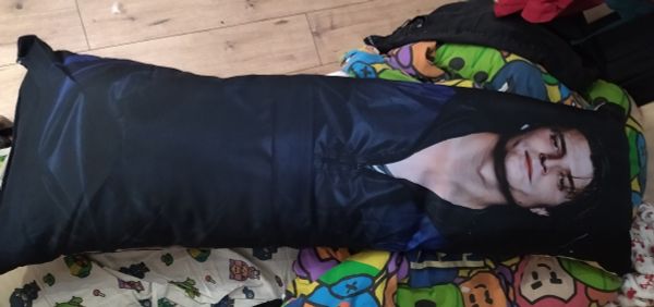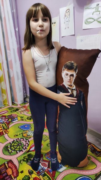 Купили в подарок на др одиннадцатилетней дочке. Подушка размером с ребенка, с изображением ее любимого персонажа. Ребенок в восторге. Качество печати хорошее, только рисунок темноват и слегка сливается черный костюм с черным фоном. В целом рекомендуем. Качество понравилось.