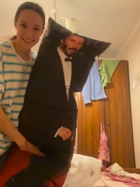 Подушка высотой 160см, с мой рост. По объемам тоже как я 😄 то есть рассчитывайте на то, что это, можно сказать, полноценный человек )) Приехала сложенная пополам с упаковочной пленке. По габаритам довольно большая, лучше на машине забирать, если далеко нести домой.